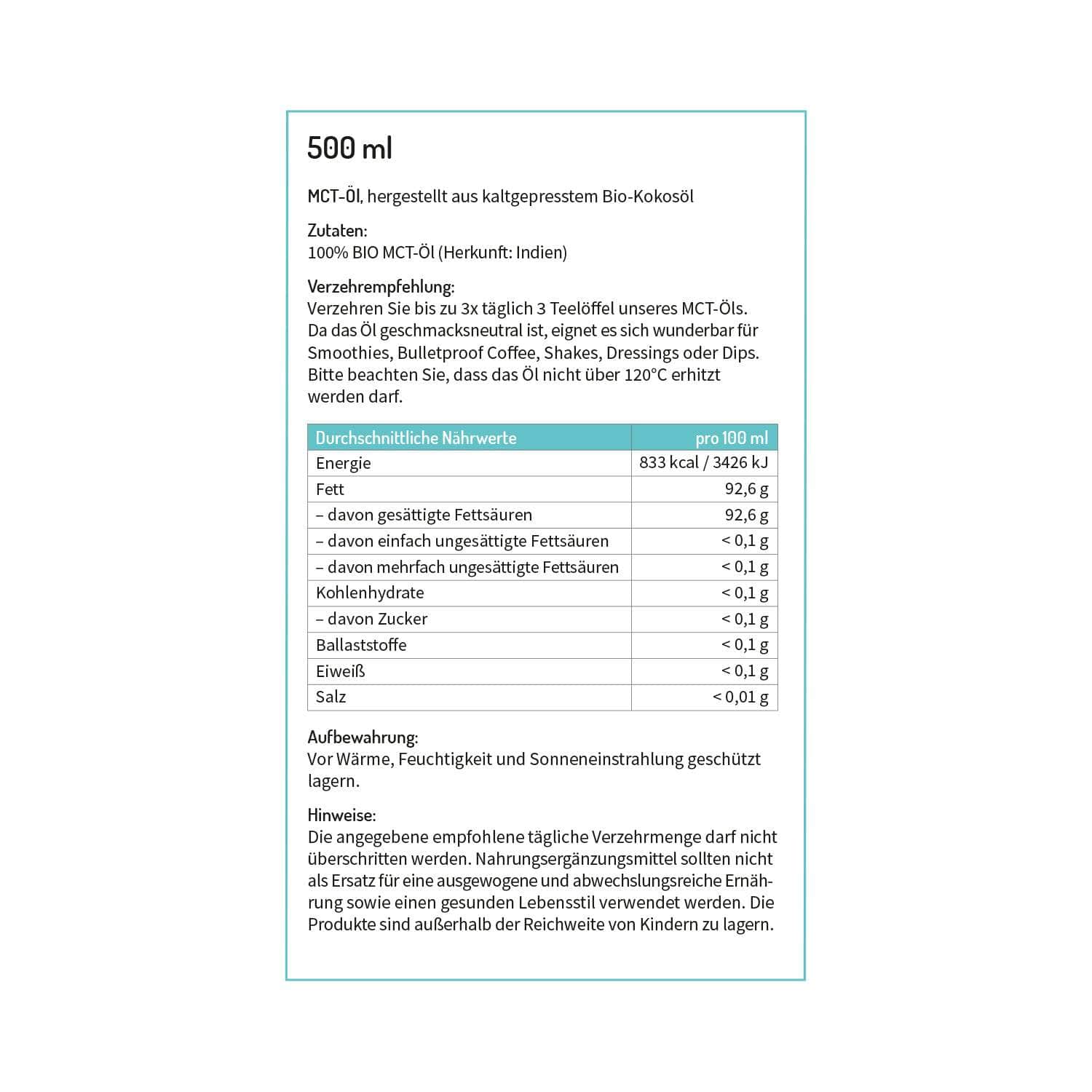 BIO MCT-Öl aus 100% Kokosöl ohne Zusatzstoffe - 500ml